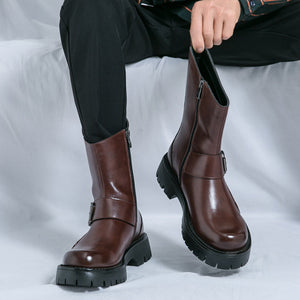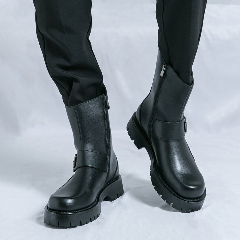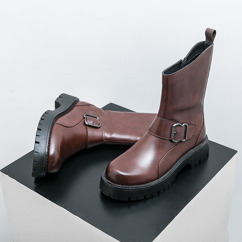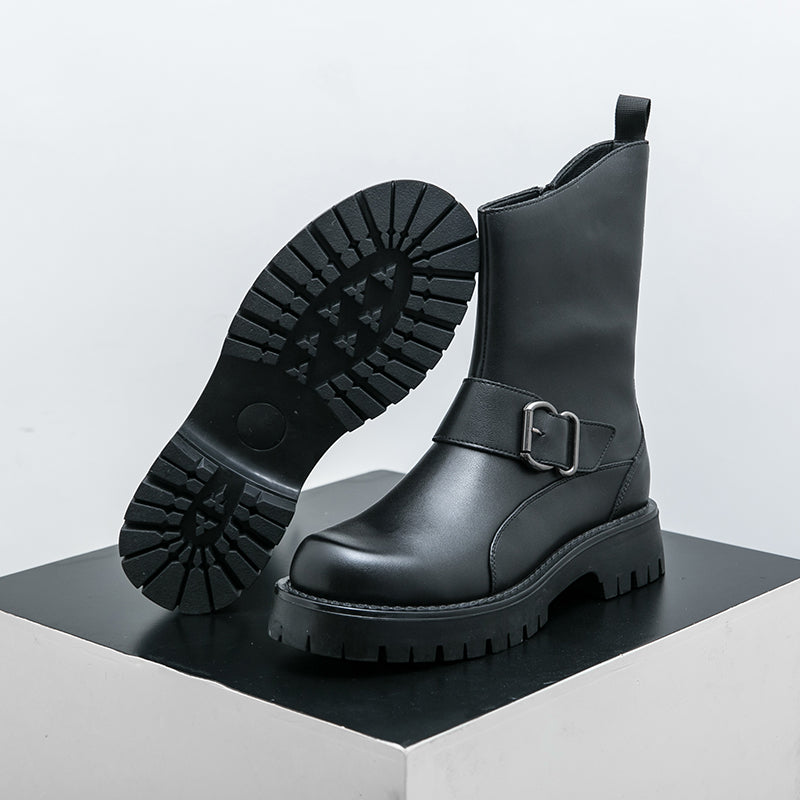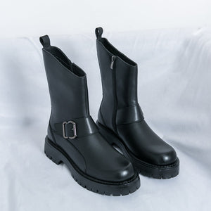 Elevate your wardrobe with Rugged Luxe Buckle Mid-Calf Boots—where style meets substance.