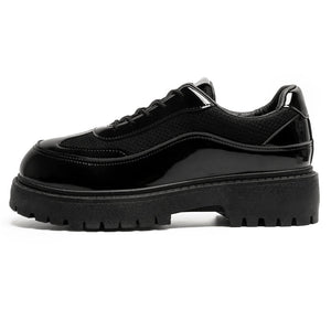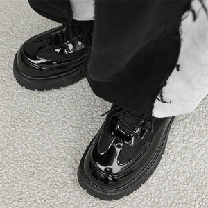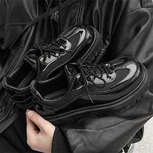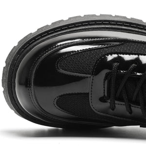 The glossy patent leather upper is complemented by breathable mesh inserts, giving a unique contrast of luxury and functionality. Perfect for those who demand versatility, these boots are suited for casual wear, edgy street style, and even semi-formal occasions.