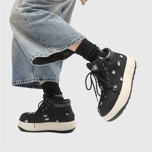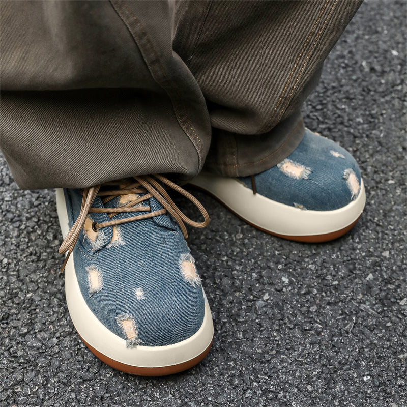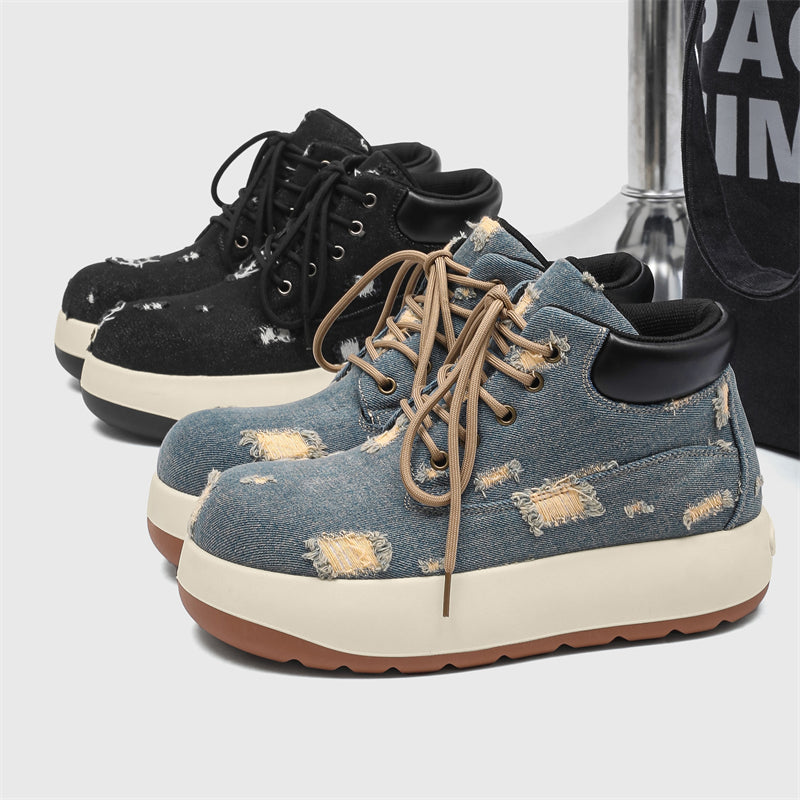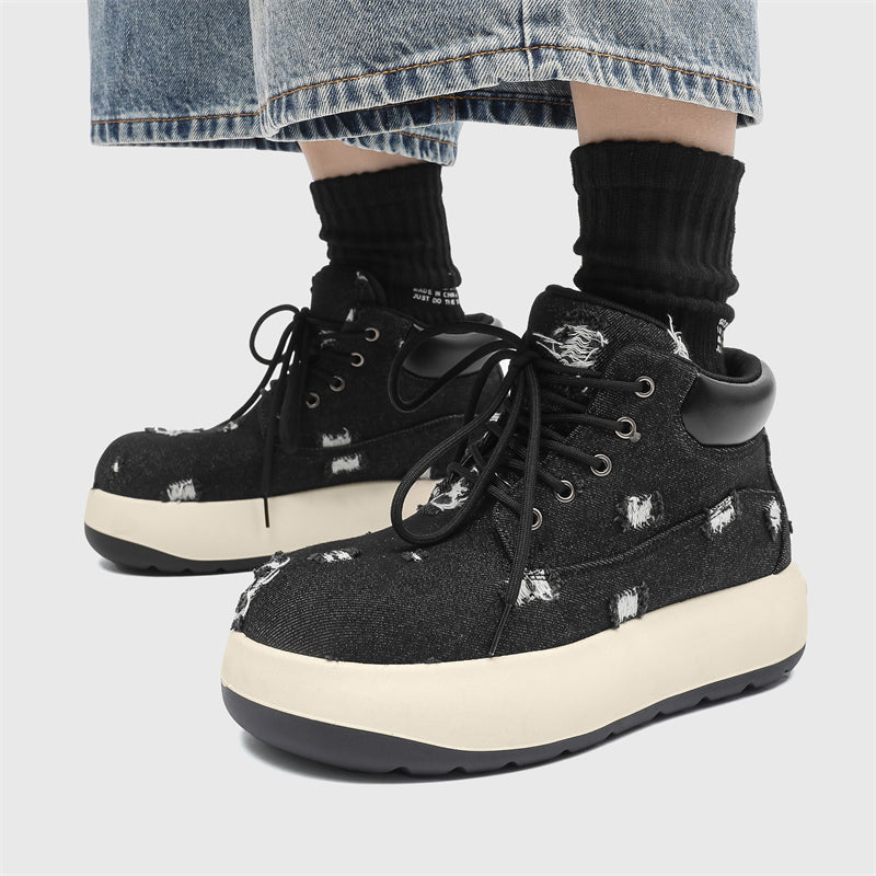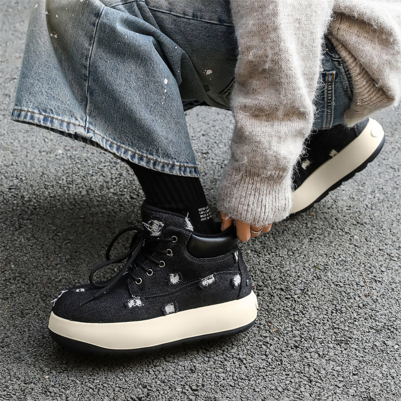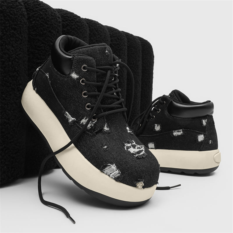 - Cosmic Black: Bold distressed denim paired with a sleek monochrome sole.