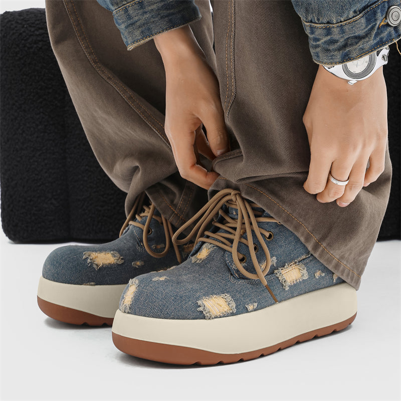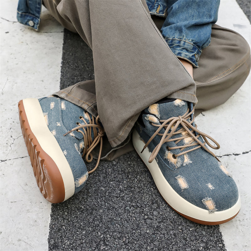 Step into a realm of luxury with the XoKool Nebula Edge X9X Moon Boots, where cutting-edge streetwear meets exceptional craftsmanship. Crafted for the modern individual who demands distinction, these boots redefine urban fashion with their unique distressed denim upper and elevated silhouette.