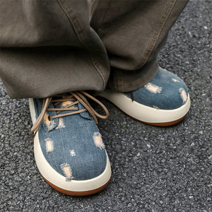 - Celestial Blue: A classic vintage-wash denim complemented by a contrasting tan sole.