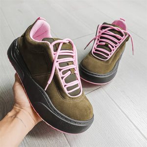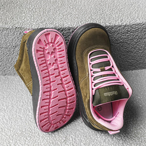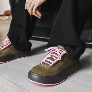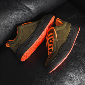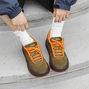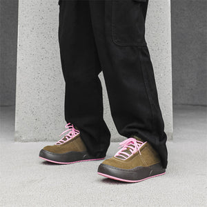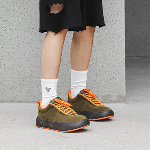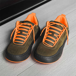 Crafted with eco-friendly suede uppers, they offer both elegance and exceptional durability. The dynamic contrast of olive green combined with vibrant accents in either orange or pink ensures your footwear is a captivating focal point.