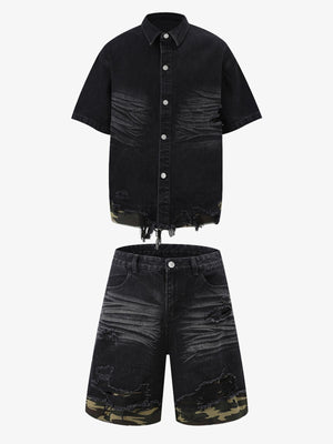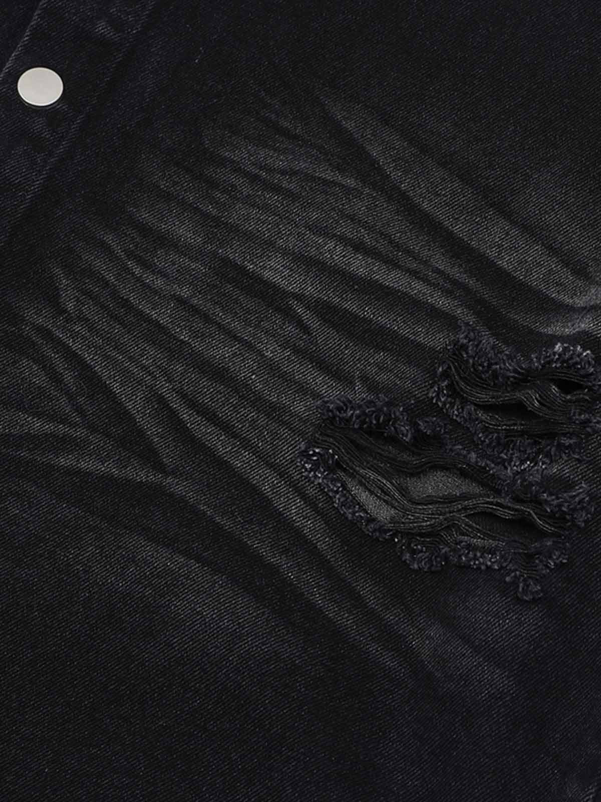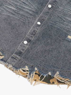 • Design Elements: Distressed and Ripped Details, Button-Down Front, Camouflage Trim