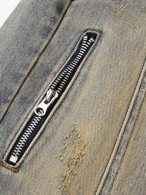 • Detail Features: Studded Accents, Distressed Look, Zipper Pockets