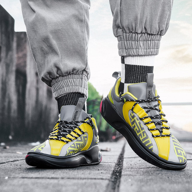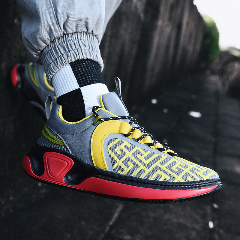Grey/Yellow/Red – Industrial grey fused with lightning yellow and fire red—igniting boldness in motion.