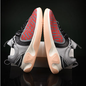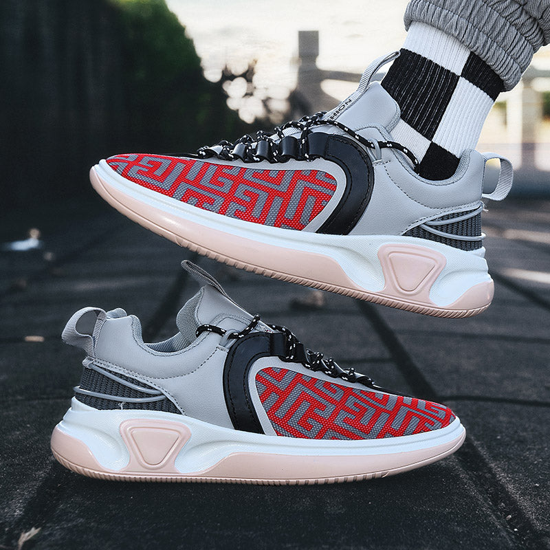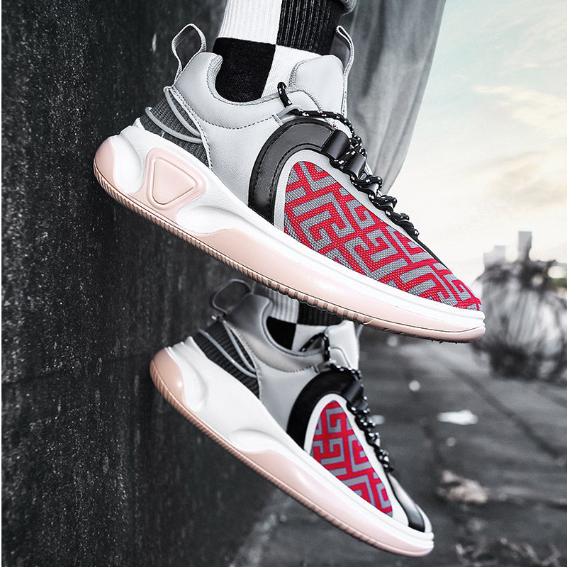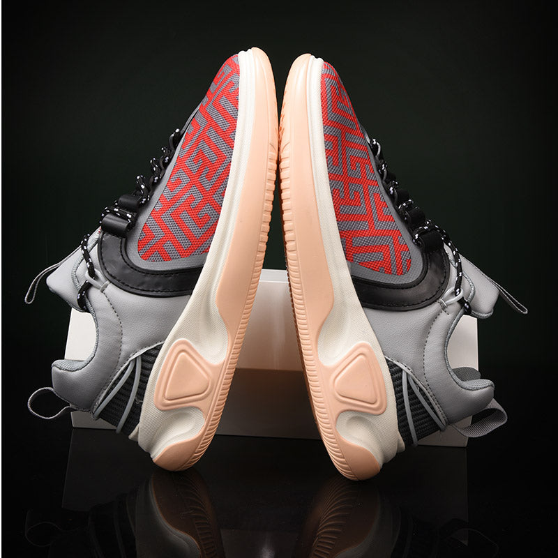 Grey/Red/Beige – A tactical blend of concrete calm, crimson charge, and sandy strength, made for city champions.