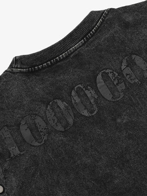 • Detail Features: Distressed Holes, Embroidered Graphic, Short Sleeves