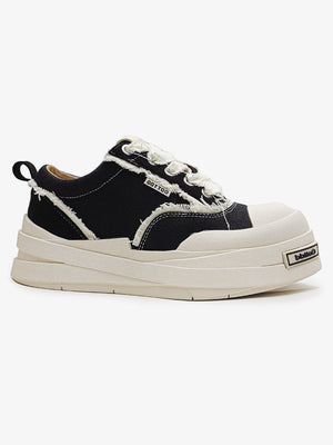 • Detail Features: Chunky White Rubber Sole, Distressed Canvas Design, Embroidered Branding on Heel