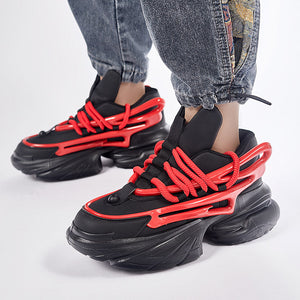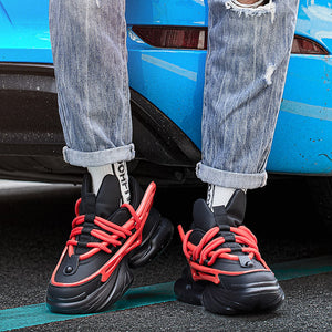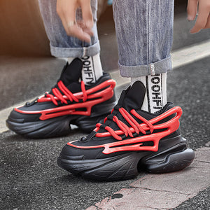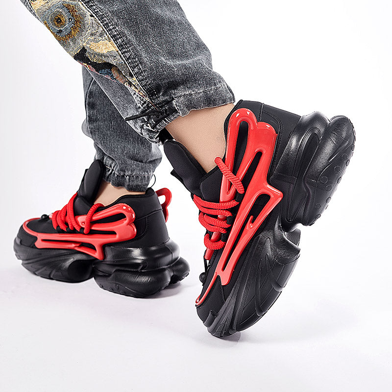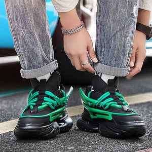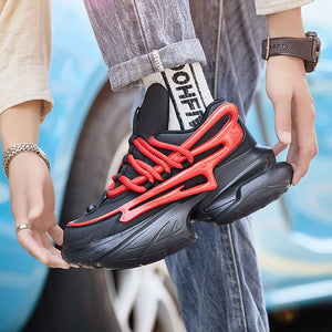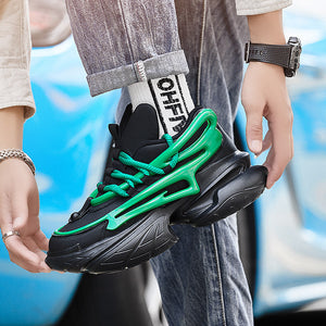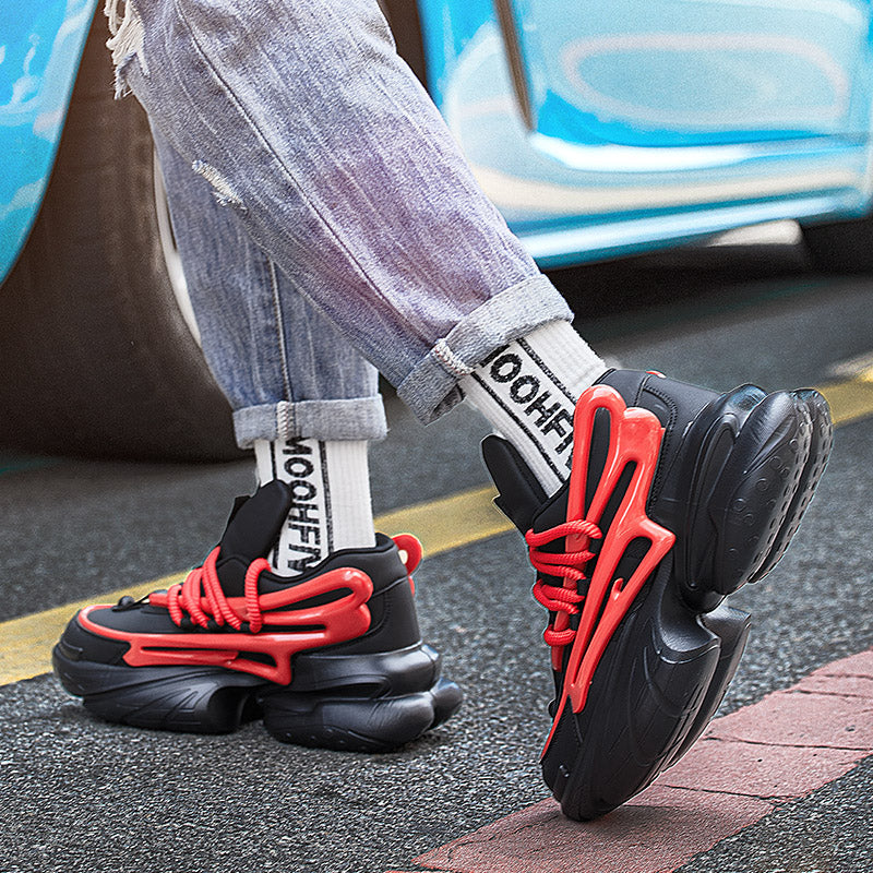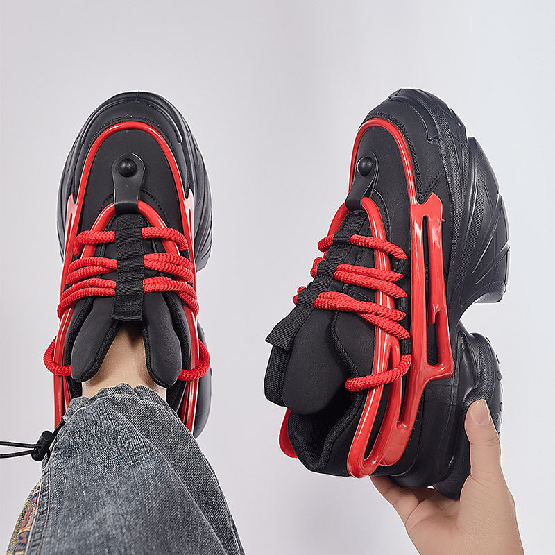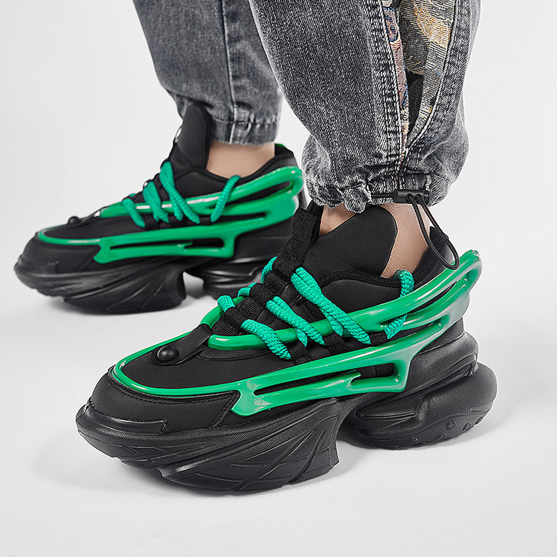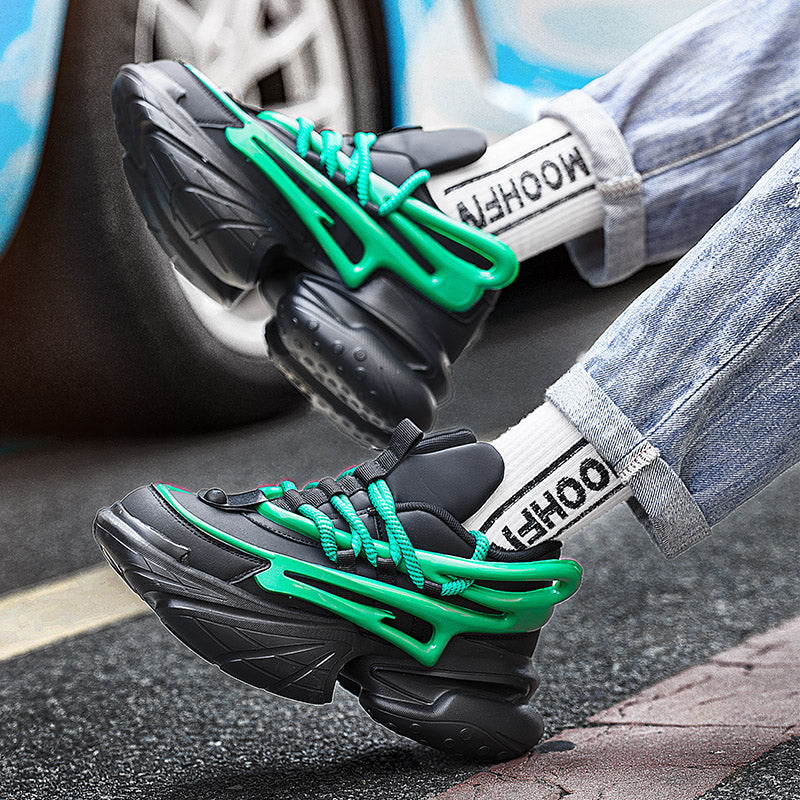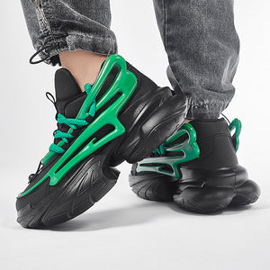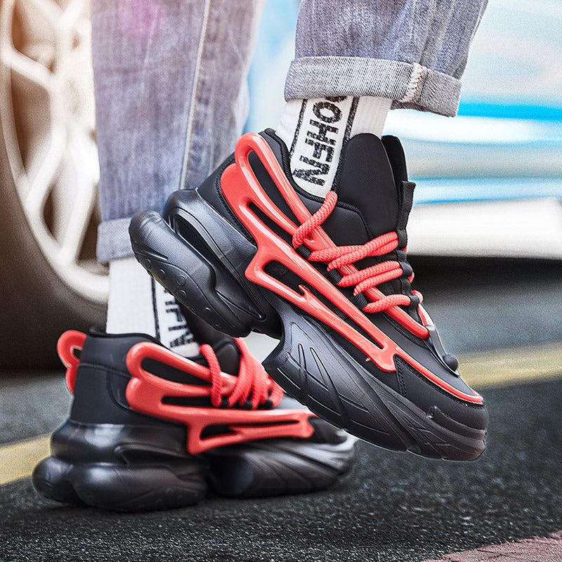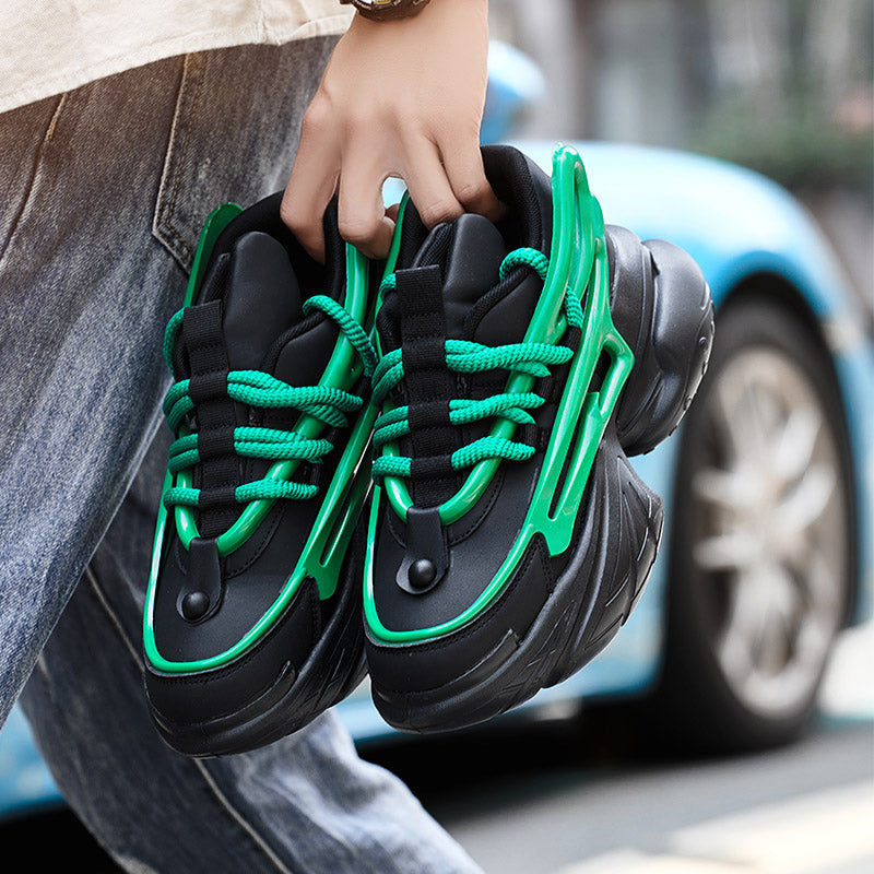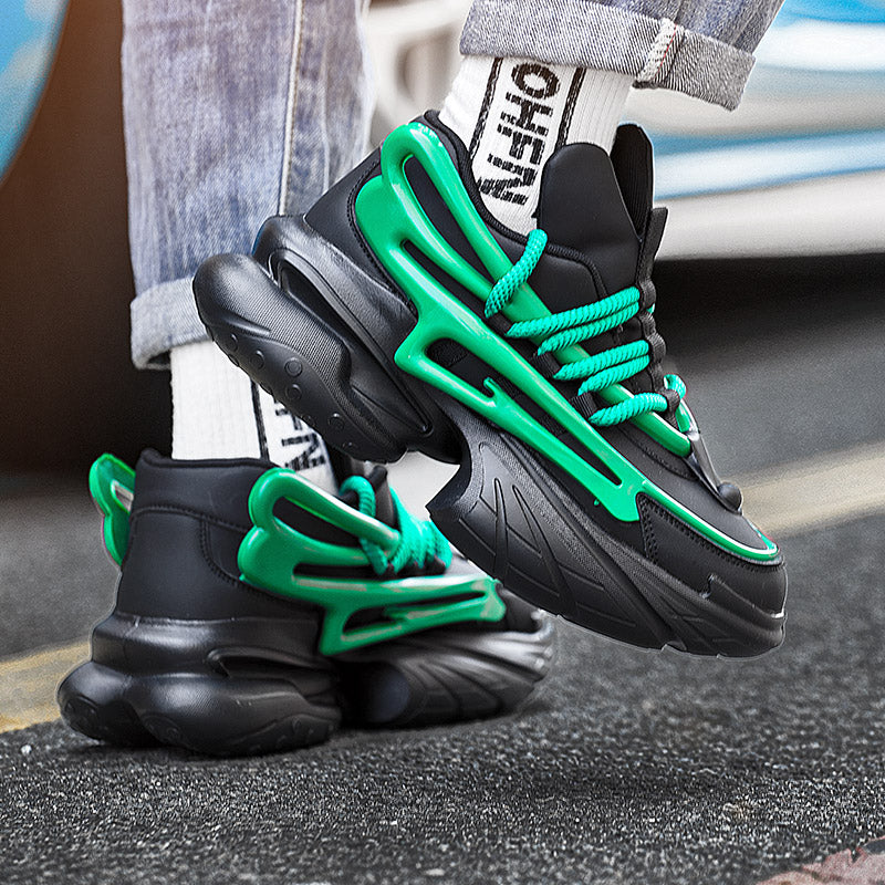 Unleash your boldest stride with the REBEL 'Riptide' X9X Sneakers – a statement piece that blends cutting-edge design with uncompromised comfort. Featuring a dynamic silhouette, these sneakers boast a futuristic TPU cage detail available in striking color accents like electric green and bold red, offering a contrast against a sleek black base.
