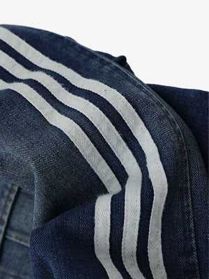 • Design Elements: Embroidered text on the chest, striped sleeves, patch pockets