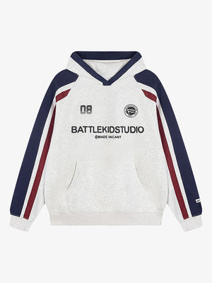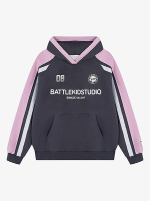 • Design Elements: Contrast color stripes on sleeves, front pocket design, printed text and logo