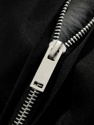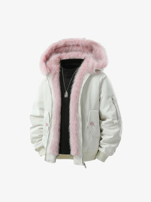 Retro Contrast Fur Collar Quilted Cotton Bomber Jacket