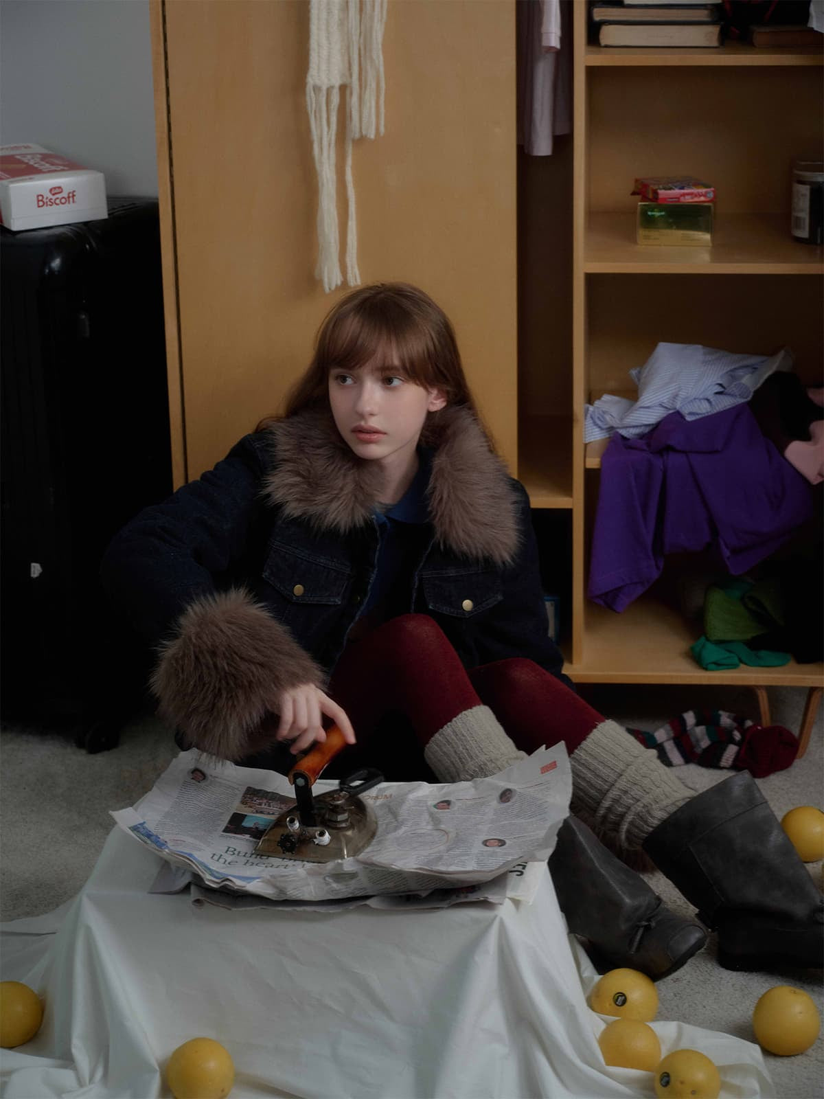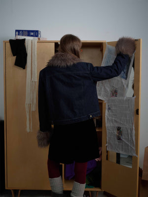 Retro Detachable Fur Collar Workwear Denim Jacket