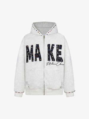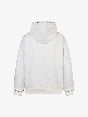 • Design Elements: Colorful stud accents on the hood and cuffs, minimalist back design