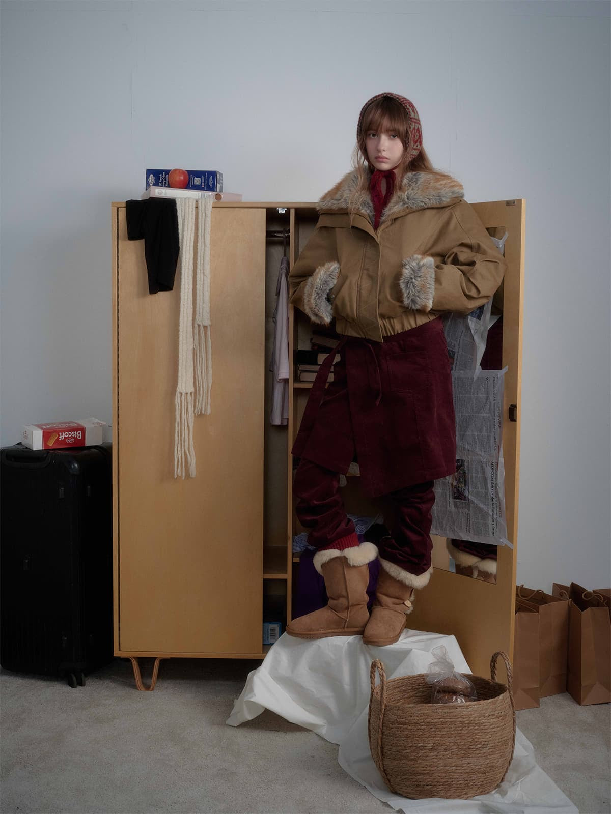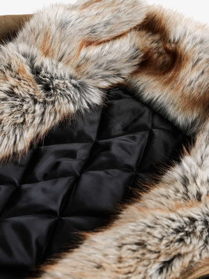 •    Luxurious faux fur trim adds warmth and style to your outfit