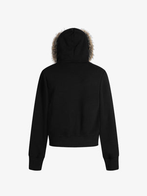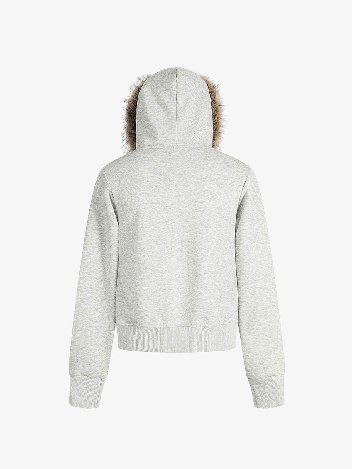 • Design Elements: Bold front graphic print, cozy faux fur-lined hood, ribbed cuffs and hem