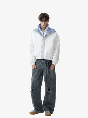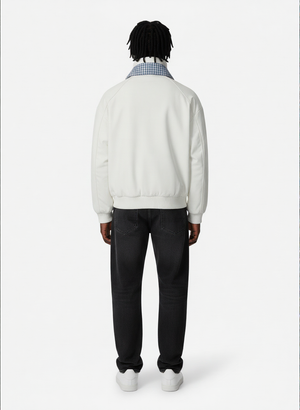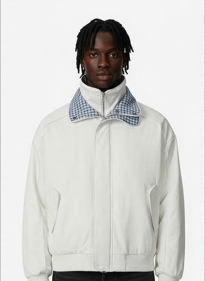 • Design Elements: Plaid collar design, front zipper closure, two side pockets