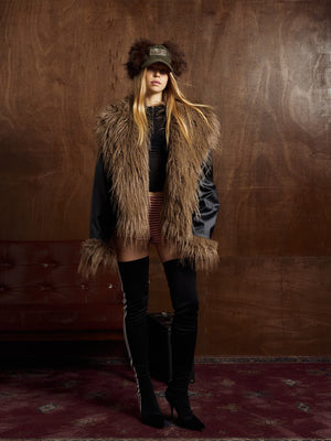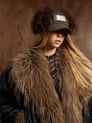 •    Luxurious faux fur trim adds warmth and style to your outfit