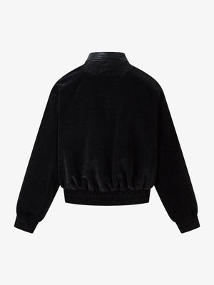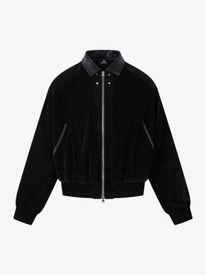 • Design Elements: Zippered arm pockets, ribbed cuffs and hem, leather collar