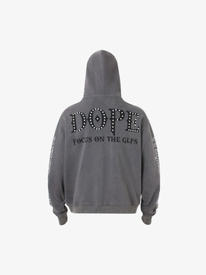 • Detail Features: Bold Graphic Print, Ribbed Cuffs and Hem, Drawstring Hood