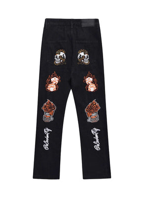 Stand out with the Skull Flame Monogram Embroidered Slim Fit Jeans Streetwear — crafted from denim for comfort and durability. This piece features skull graphic detail, bringing a bold edge to your look. Perfect for layered outfits and modern streetwear lovers.