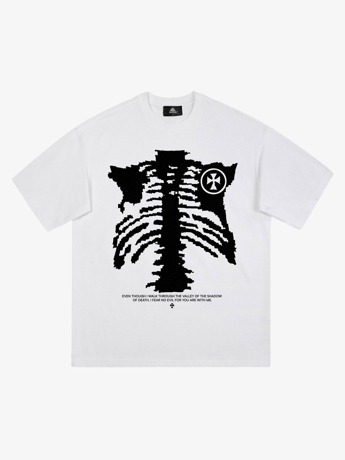 • Unique rib cage graphic for a bold statement