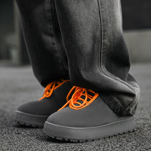 Experience exceptional comfort with cushioned insoles and padded interiors, ideal for all-day wear. The durable rubber sole provides superior grip, instilling confidence with every step. Designed to fit true to size, the minimalist yet bold design seamlessly complements joggers, cargo pants, dark denim, and urban outfits alike.
