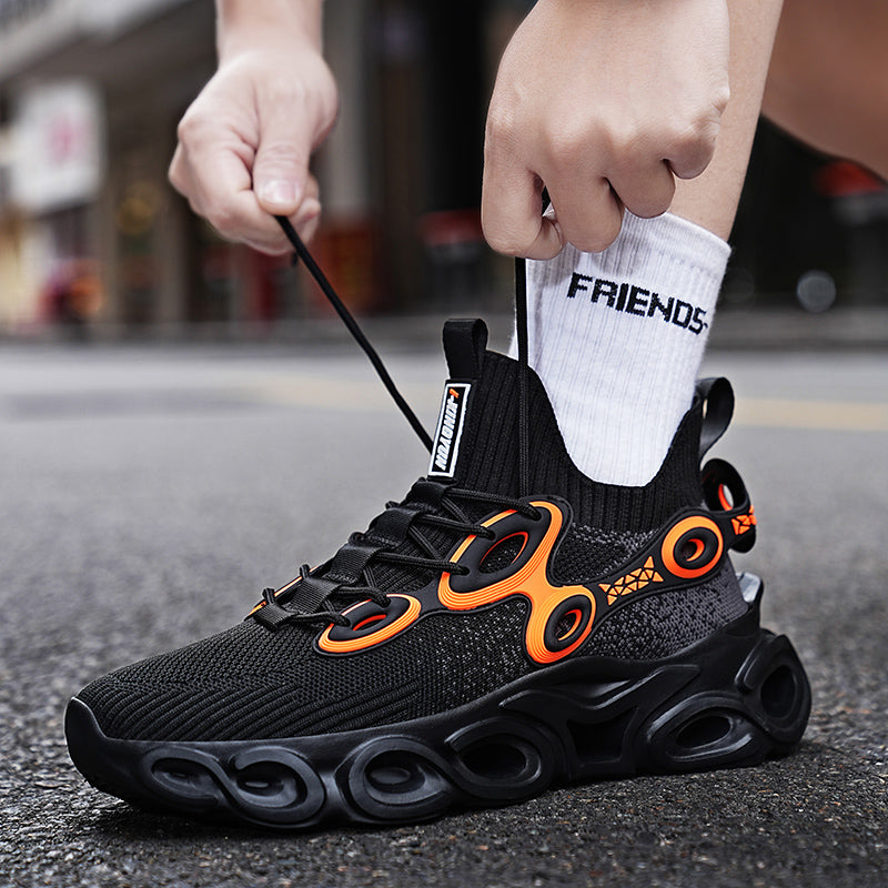 Pair them with slim joggers or structured cargos for streetwear elevation. Add a graphic tee or tech-wear hoodie to amplify the futuristic vibe. These sneakers also complement minimalist fashion—monochrome sets or oversized fits highlight the design's energy. From city explorations to rooftop nights, Stealth Stride adapts to every rhythm.