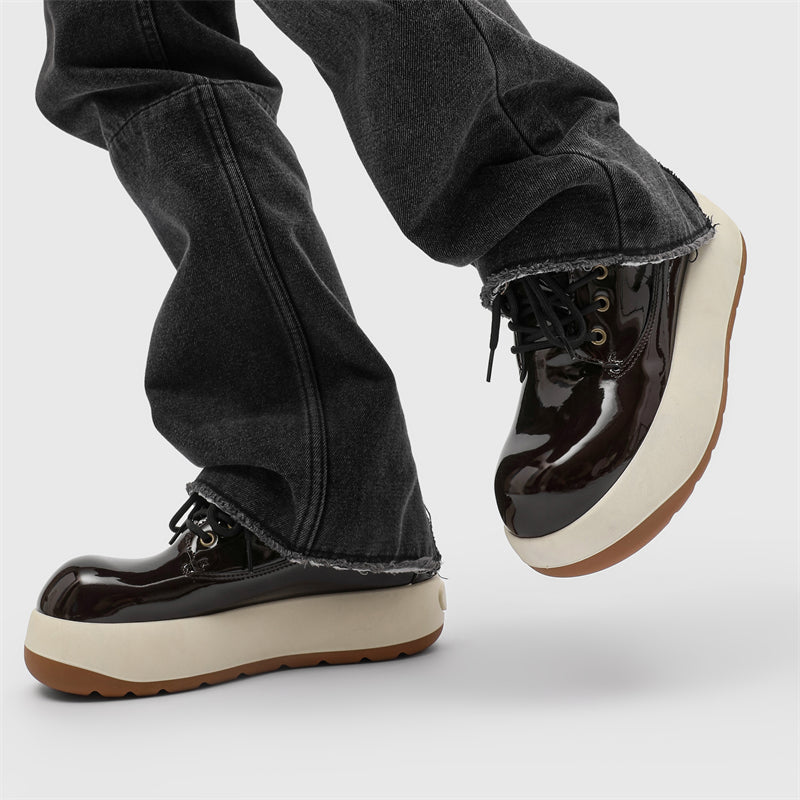 Adjustable lace-up closures featuring metal-reinforced eyelets promise a tailored fit, enhancing both style and comfort.