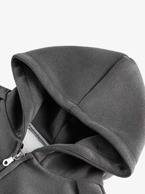• Design Elements: Full-length front zipper, adjustable hood, side pockets