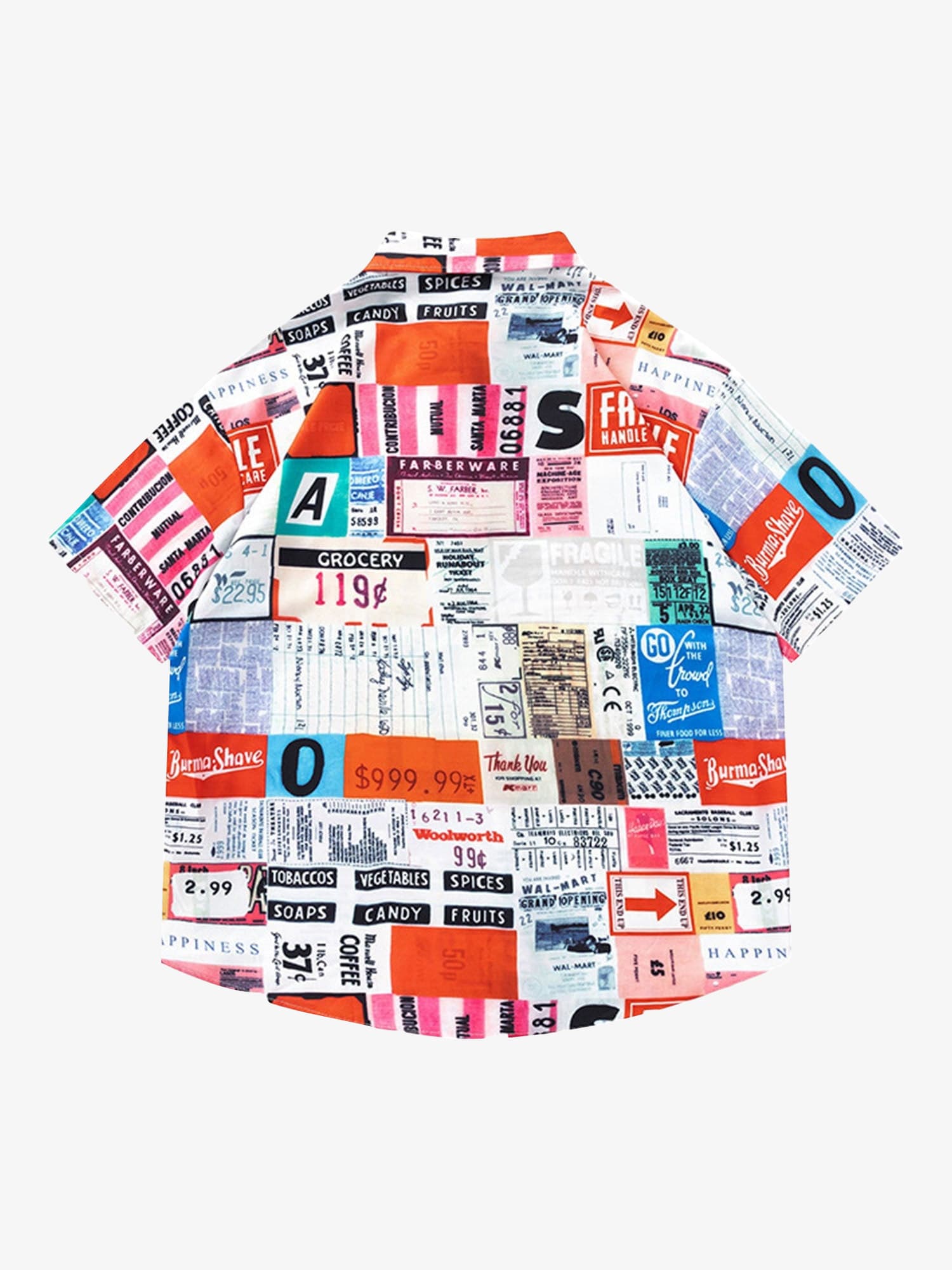 • Detail Features: Button-Up Front, Short Sleeves, Graphic Print