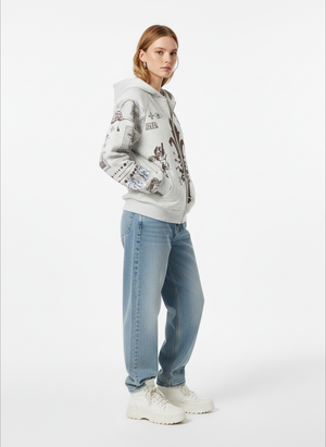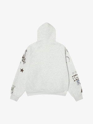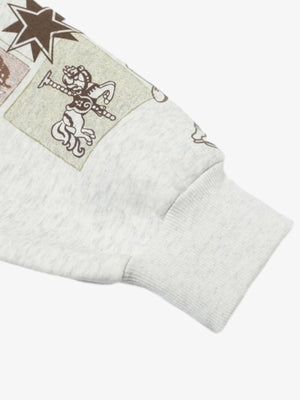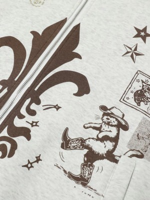 • Design Elements: Central fleur-de-lis motif, playful cartoon illustrations, text graphics