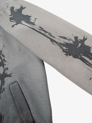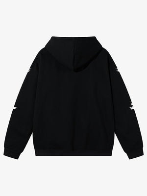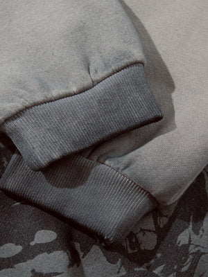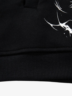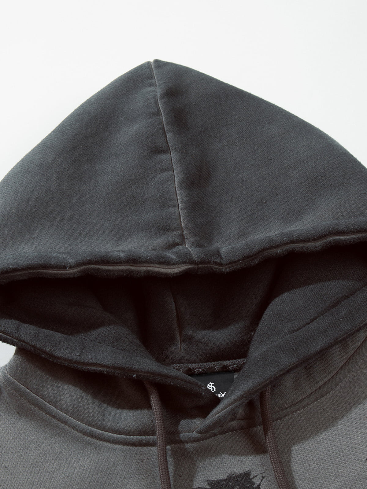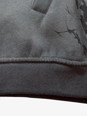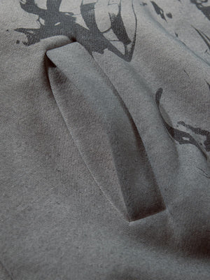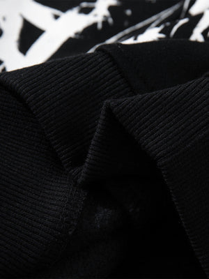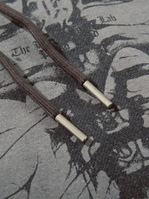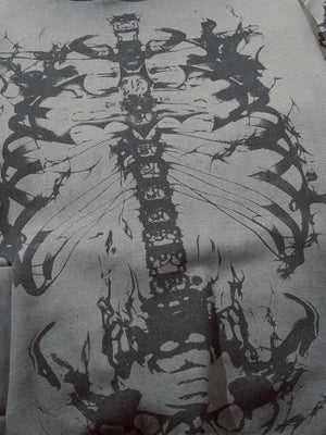 • Design Elements: Distressed hem details, skull print pattern, round neck design