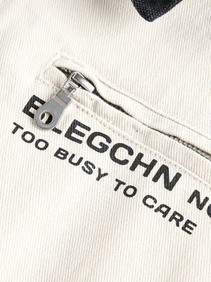 • The bold lettering on the chest pocket enhances the overall trendy aesthetic