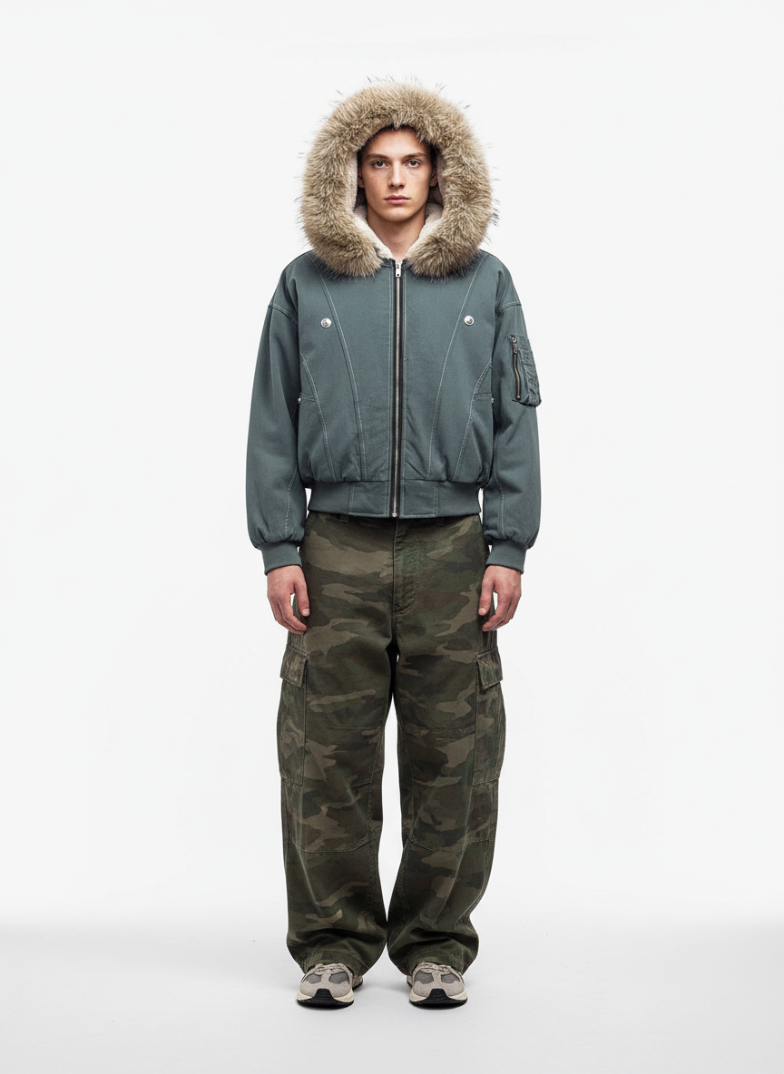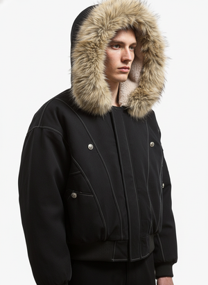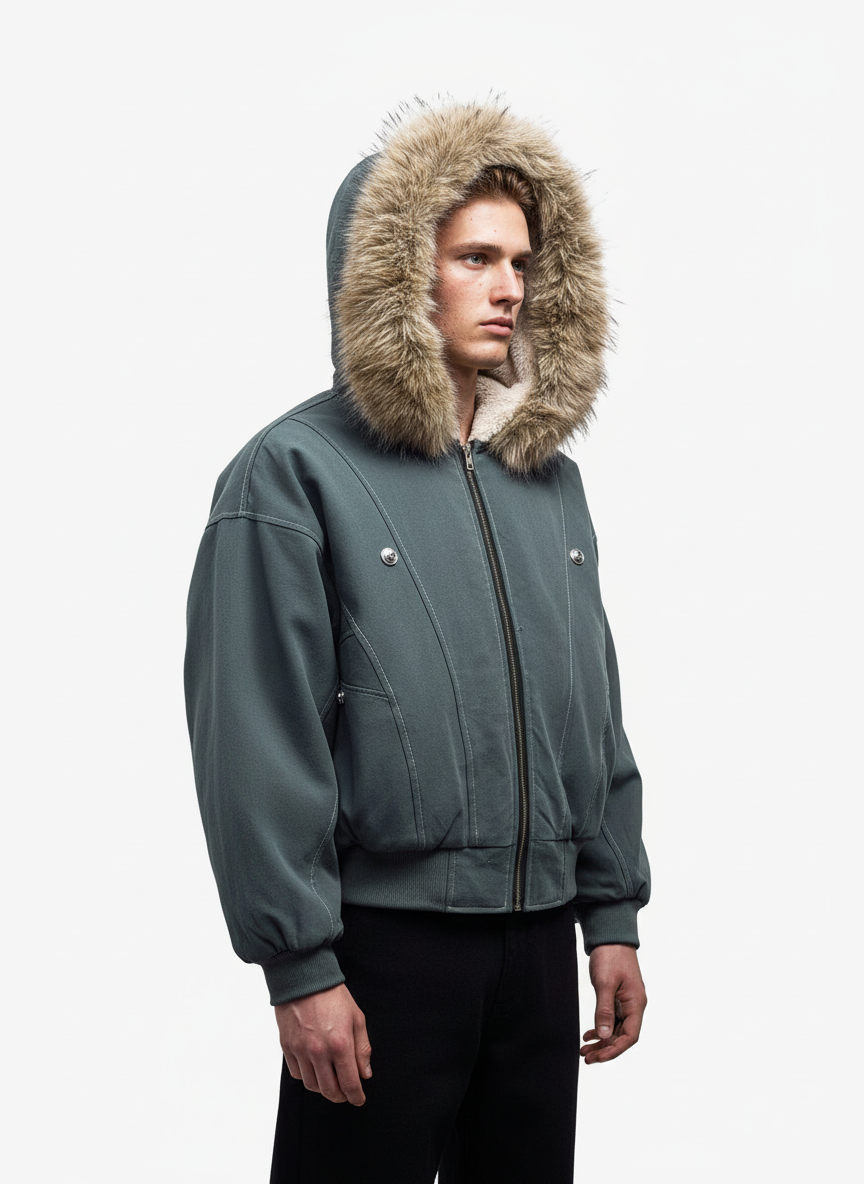• Design Elements: Faux Fur Trim, Ribbed Details