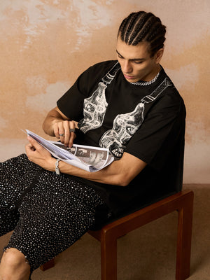 • The eye-catching overalls print adds a playful twist to your casual wardrobe