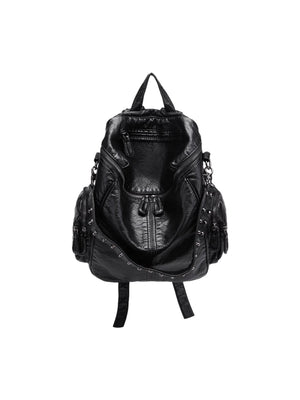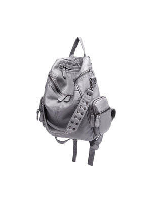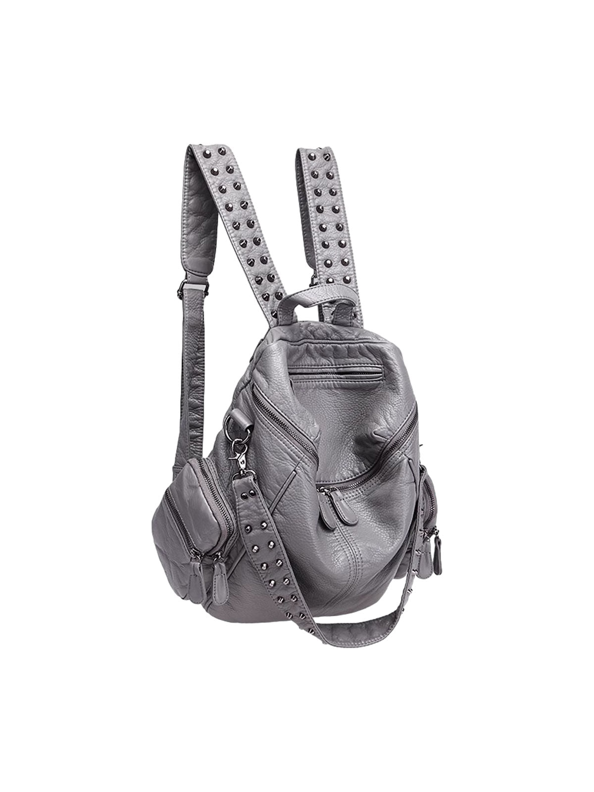 • Design Elements: Quilted Texture, Studs on Side Pockets, Multiple Zippered Compartments