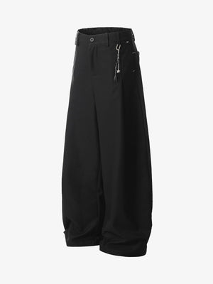 • Design Elements: Loose fit silhouette, side charm accessory, high-rise waistband