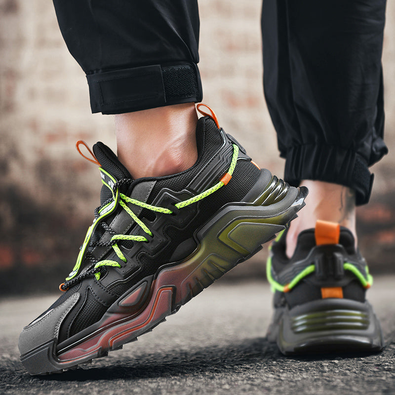 Our THUNDERBOLT X9X Series is a fusion of Retro and Futuristic design elements. The exaggerated outsole design, unique lacing system, blown-up proportions and bold colour blocking breaks focus and commands attention. The loud and unapologetic design has made them an instant hit among the fashion aficionados.