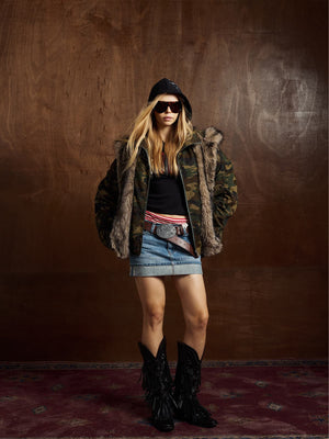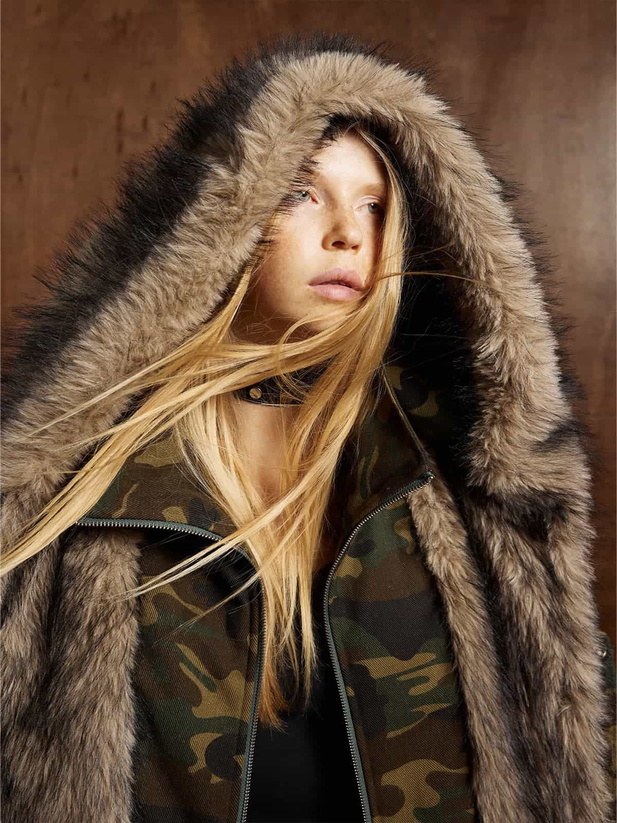 • Luxurious faux fur trim adds warmth and style to your outfit