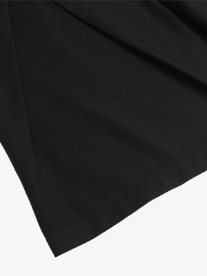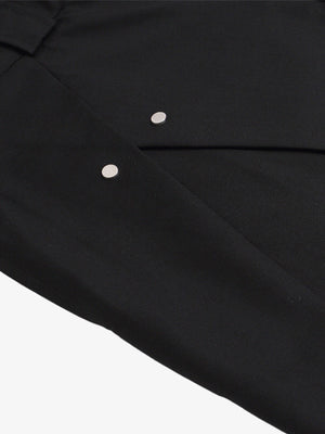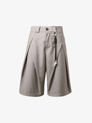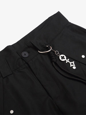 • Design Elements: Asymmetric hem design, decorative tassel with beads, button and belt loop closure