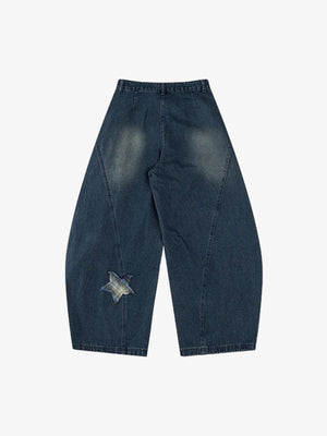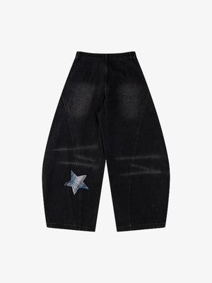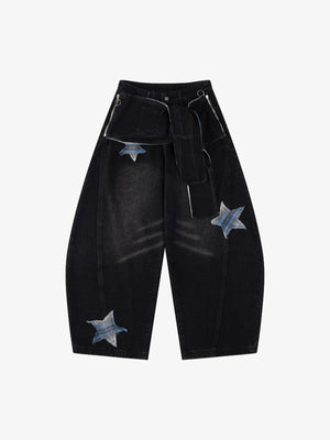 • Design Elements: Star-shaped patches, wide-leg silhouette, adjustable waist tie