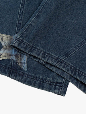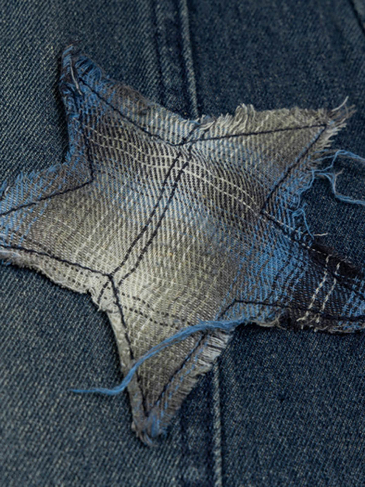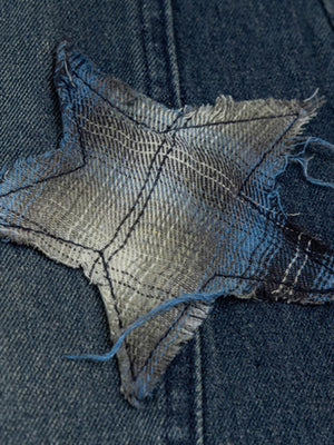 • Unique star patches add a trendy touch to your outfit