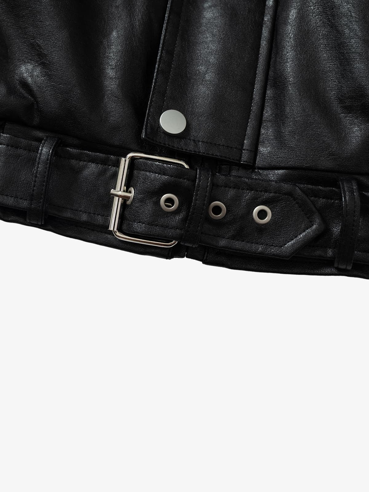 Vintage Detachable Fur Collar Quilted Leather Jacket