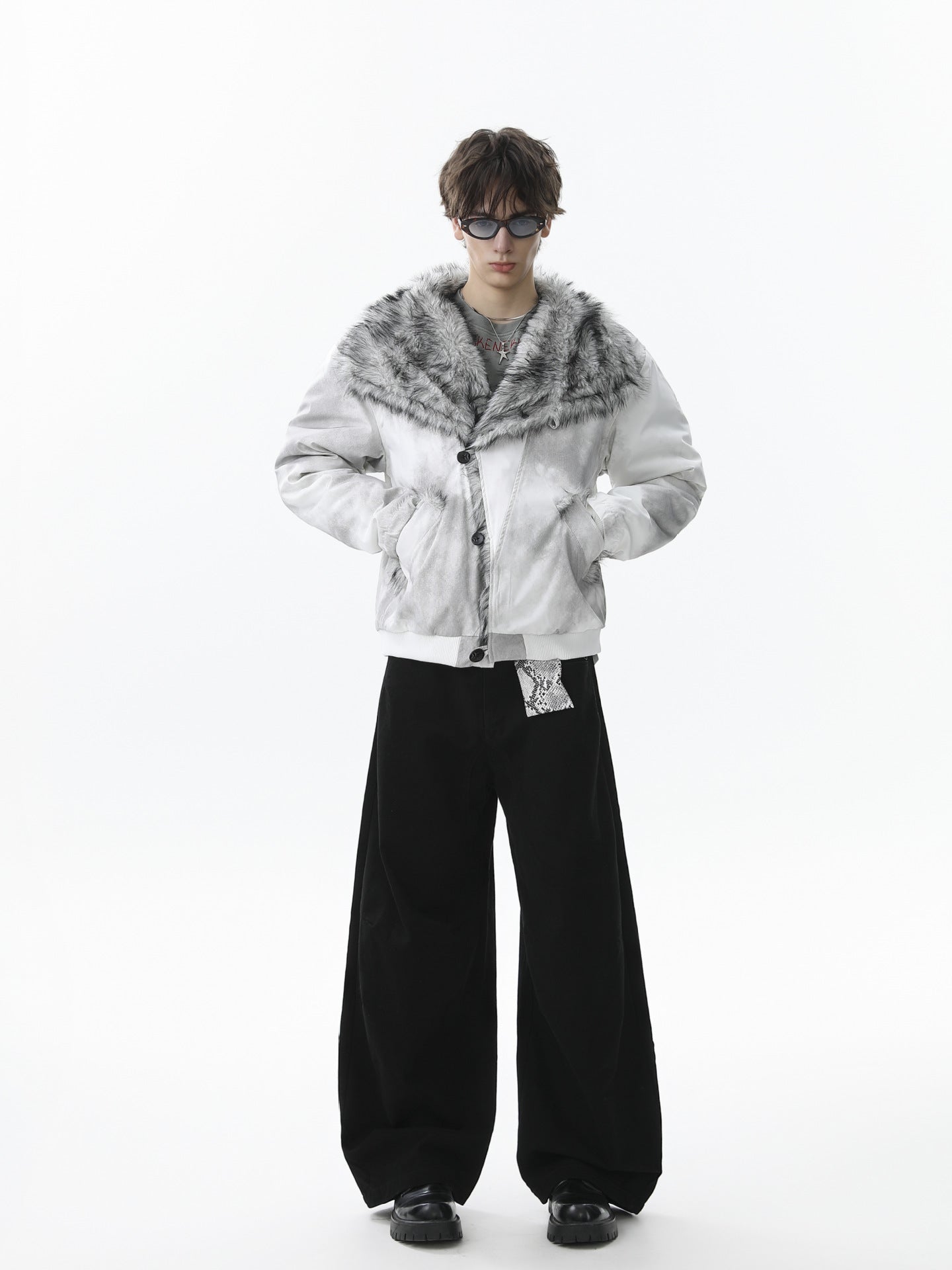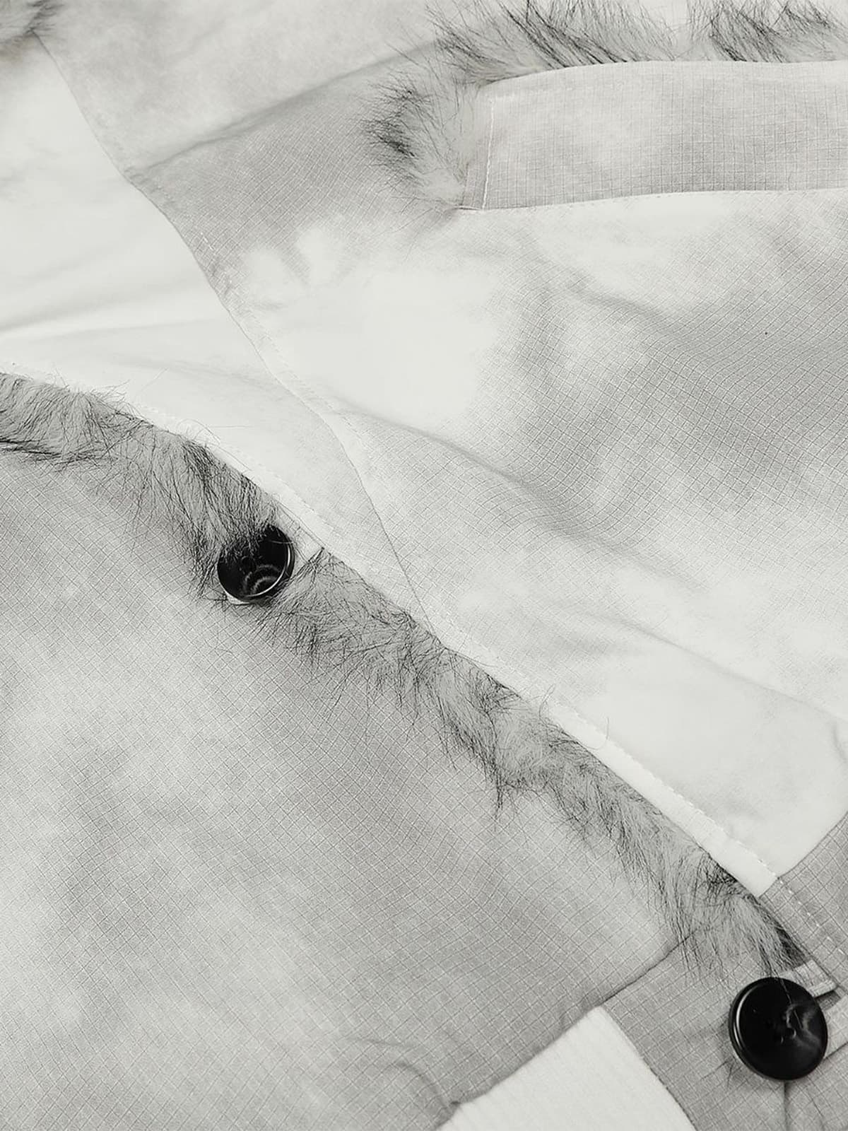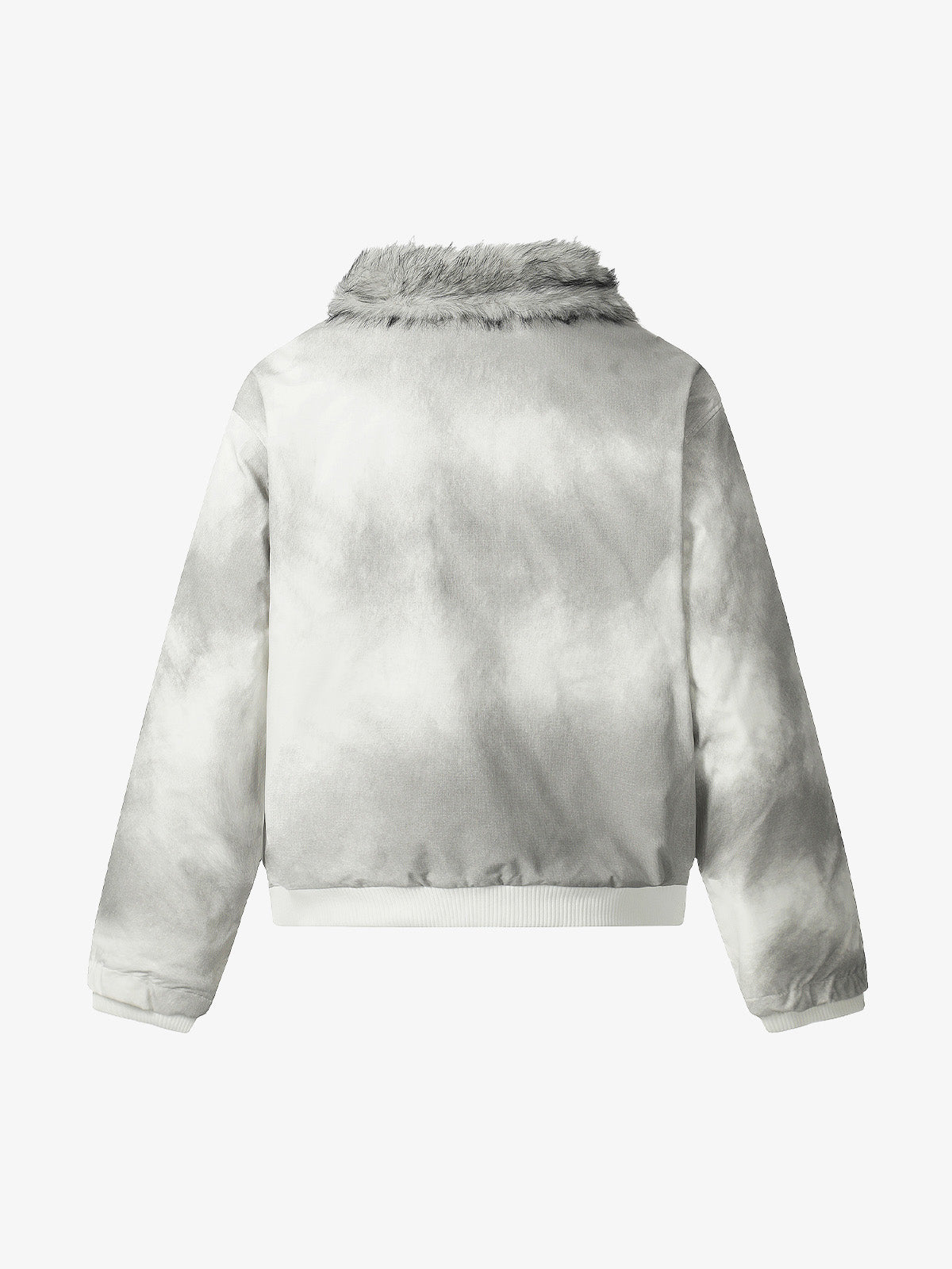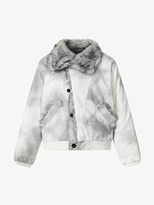 Vintage Dirty Dyed Washed Faux Fur Collar Padded Jacket