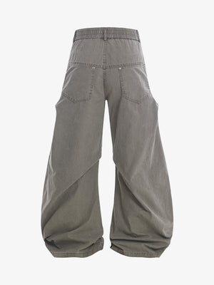 • Design Elements: Unique wide-leg silhouette, diagonal stitching details, relaxed fit