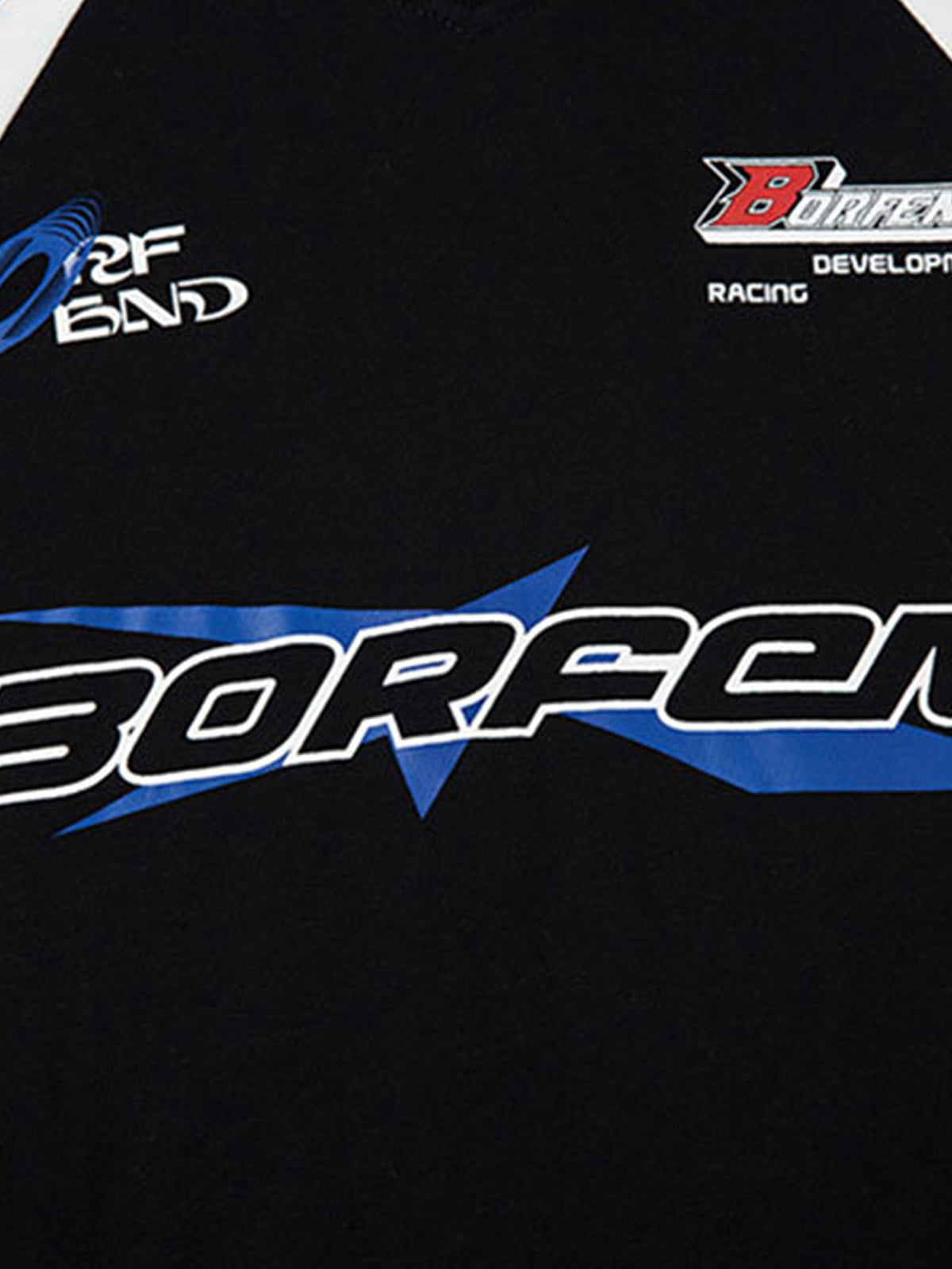 • Detail Features: Contrast Raglan Sleeves, Graphic Print, Crew Neck