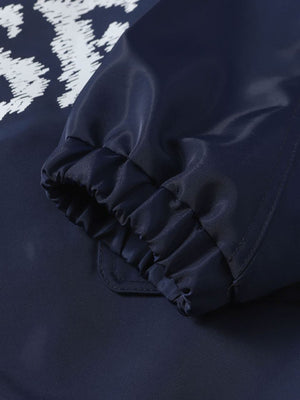 • Design Elements: Large front graphic print, zippered closure, elastic cuffs and hem