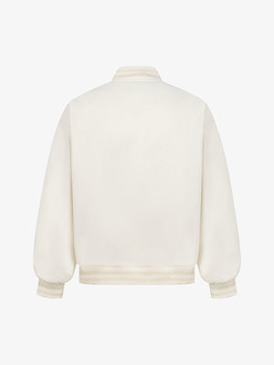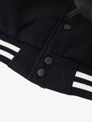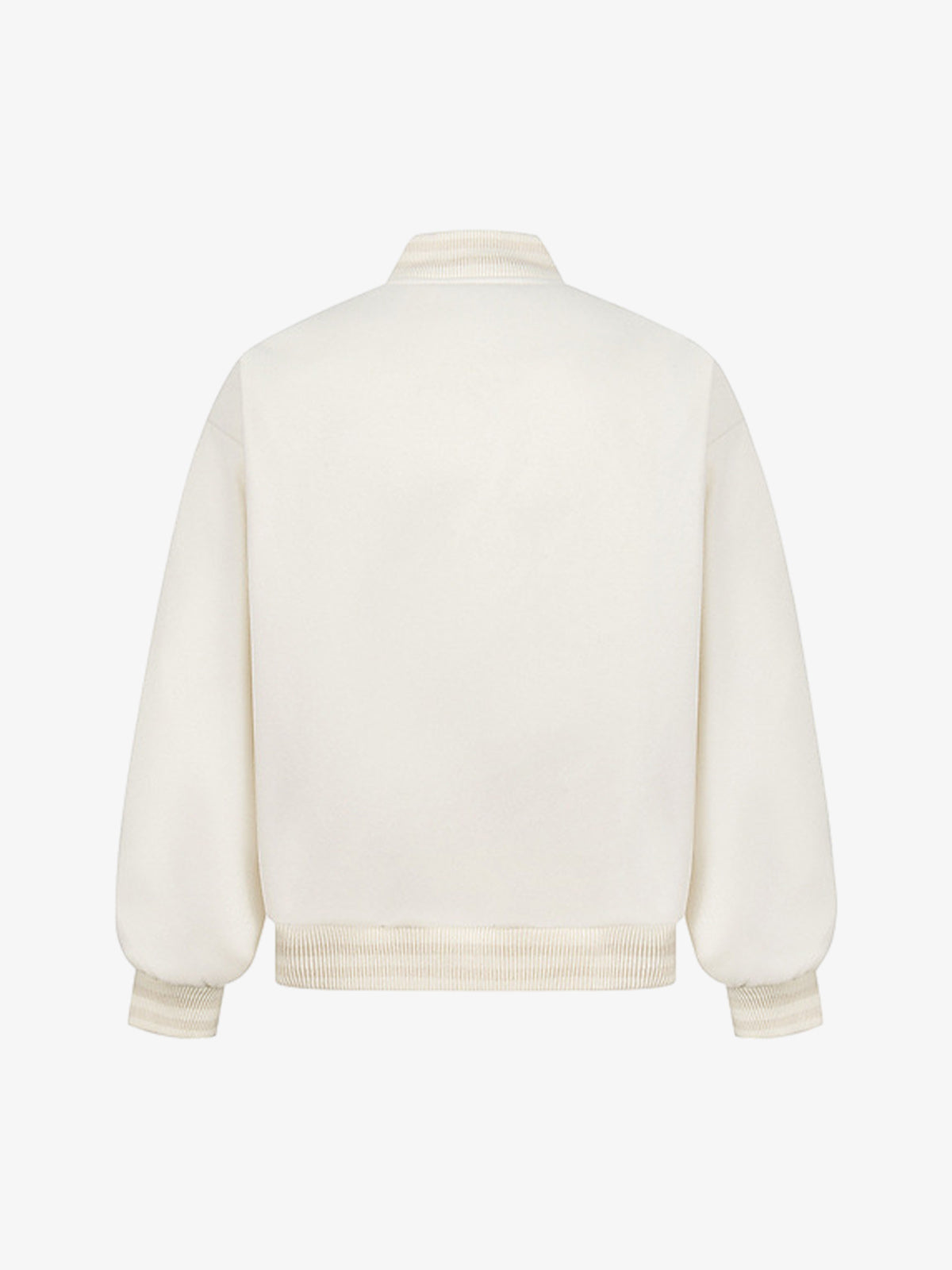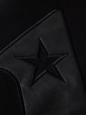 • Design Elements: Distinctive leather patches with star and geometric shapes, ribbed cuffs and hem, button closure