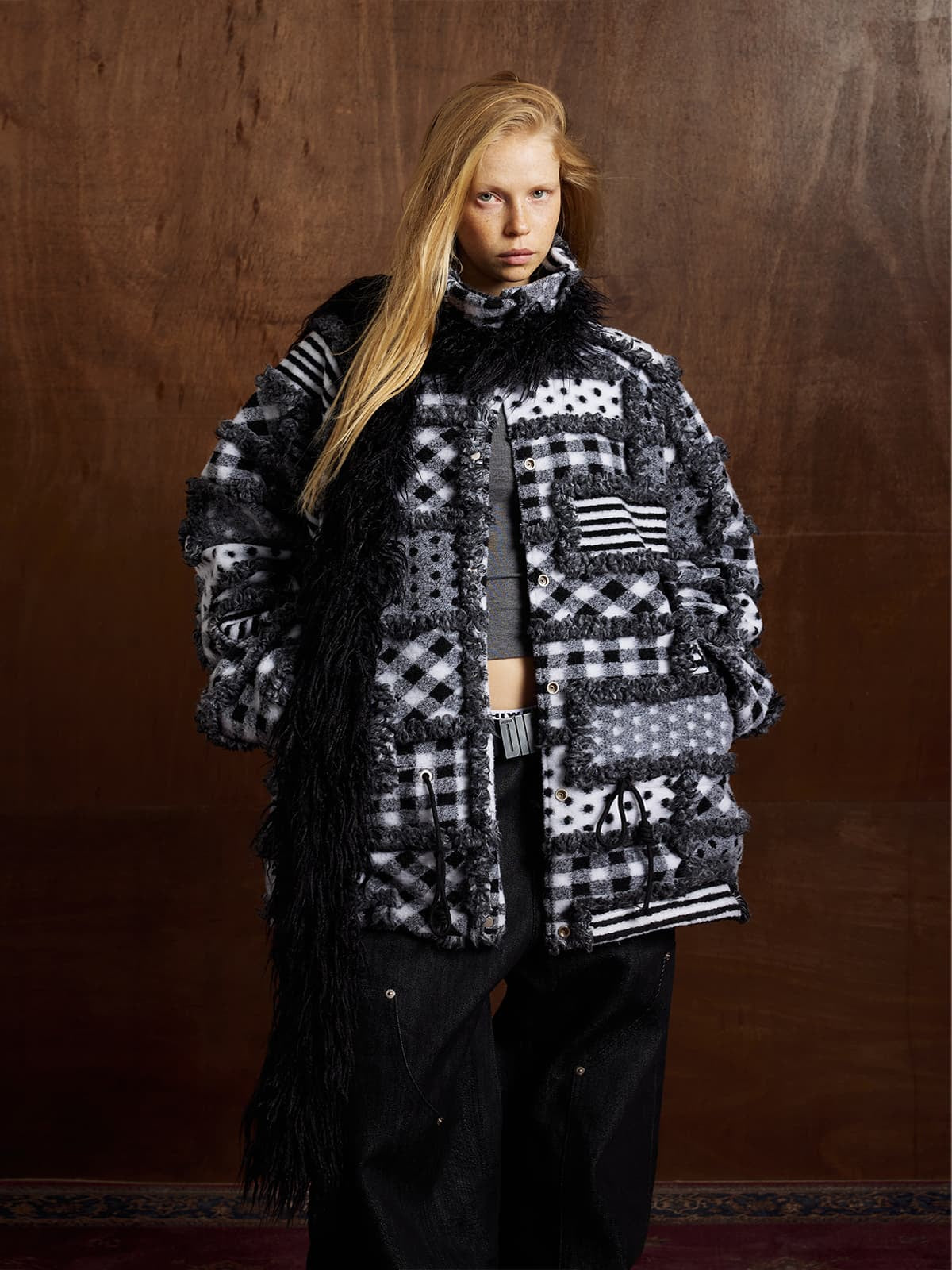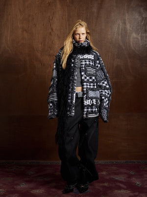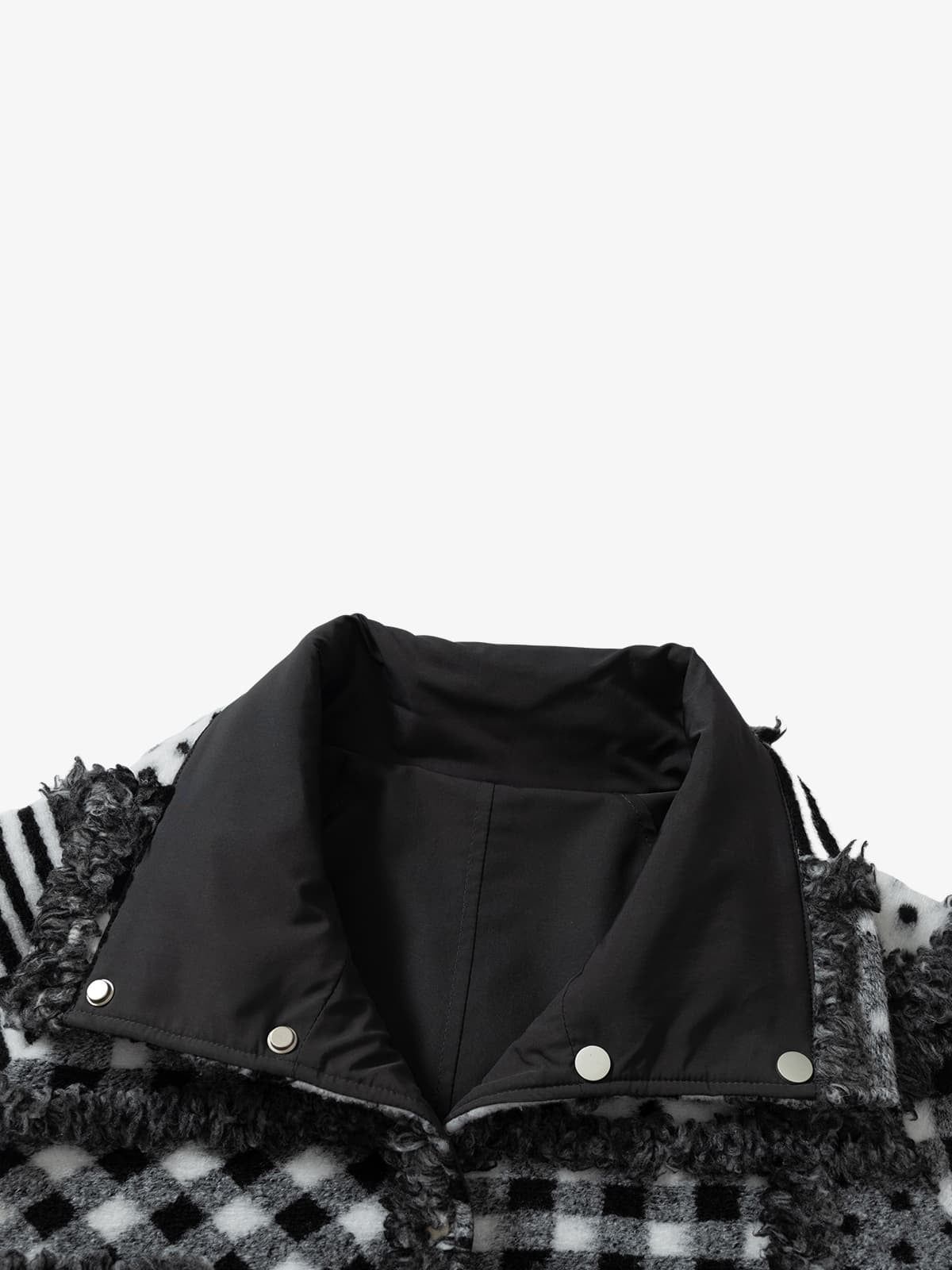 Vintage Plaid Polka Dot Reversible Sherpa Cotton Jacket